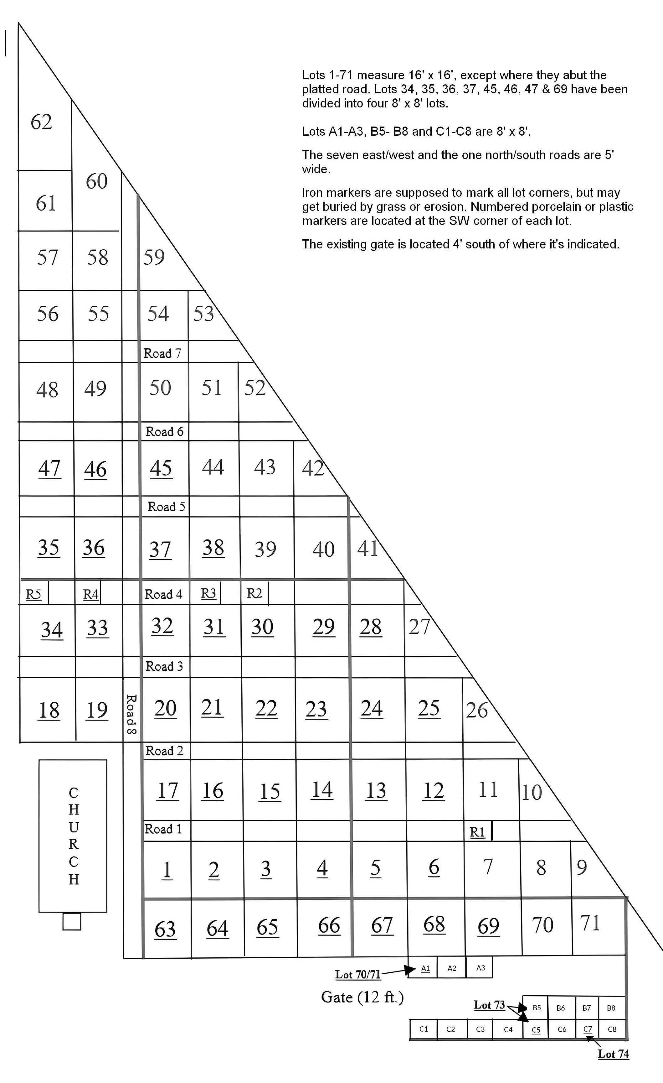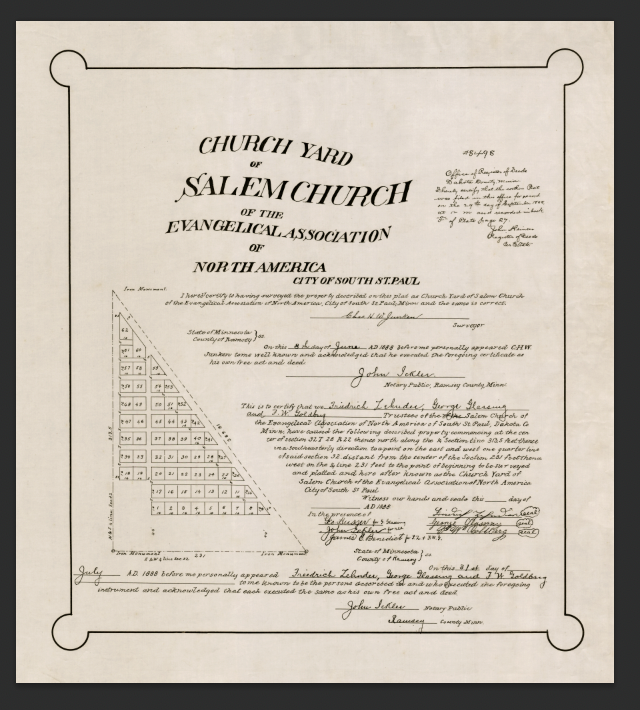 The original cemetery plat for Old Salem dates back to July 31, 1888. It was signed by Friedrich Zehnder, George Glassing and F.W. Goldberg.